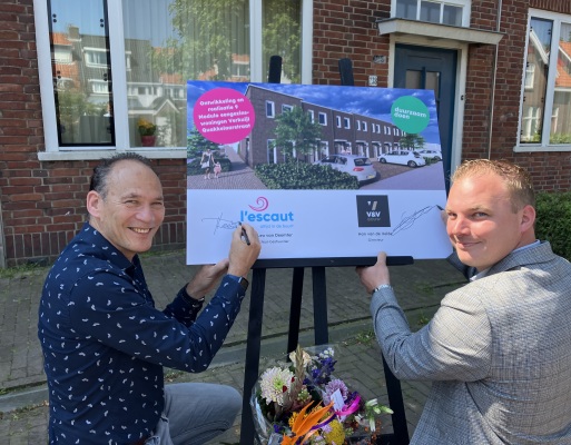 Op donderdag 30 mei vond de officiële start van de bouw van ‘De Admiraliteit’ plaats. Jan Leo van Deemter, directeur-bestuurder l’escaut, dhr. Boonman, wethouder van de gemeente Vlissingen en Stefan den Dekker, directeur van Bouwgroep Peters, sloegen de symbolische eerste paal. De Admiraliteit ligt in de Scheldewijk aan De Baloeranstraat, De Maipustraat, De Insulindestraat en de Willem Ruysstraat en is de vijfde deellocatie in de Scheldewijk. We bouwen hier 23 duurzame eengezinswoningen en 27 duurzame appartementen.